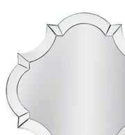 Perfectly on-trend is this elegant quatrefoil shaped design constructed using all hand-beveled clear mirror panels to form the framing and clear mirror glass. Curved mirror panels are all worked by hand and deliver a benchmade quality not found in mach