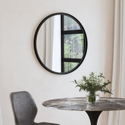The Jackie Wall Mirror epitomizes modern sophistication, with a sleek and slender metal frame elegantly finished in black. Its round shape adds a touch of contemporary flair, while the mirror's minimalist design showcases the beauty of simplicity.