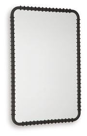 This accent mirror's sleek black finish and ribbed design add a touch of contemporary chic to any room. Its versatile hanging options allow you to display it vertically or horizontally, making it easy to complement your existing decor. The clean lines and simple shape create a modern and minimalist feel, while the substantial frame adds a touch of boldness.