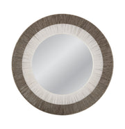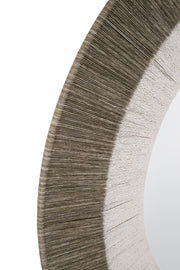 - Art deco-inspired round wall mirror with a distinctive gray rope frame