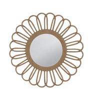 The Naples Wall Mirror showcases rope loops overlapping to form a distinctive daisy-like shape, adding a charming touch to any space. With its coastal and boho vibes, this round mirror effortlessly enhances the ambiance of your room. Its brown hue adds a natural elegance, perfect for complementing your decor style.