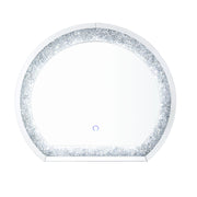Reflect your charm and confidence in this glam style Noralie Mirror. The half-circle mirror with LED lights provides perfect view and brightness. Faux diamonds surround frame showcases an even more dazzling style, adding modern glamour to your space. Both functional and stylish. this glitzy wall decor will brighten up any room in your house.