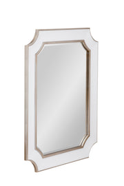 The Preston Wall Mirror is a fusion of glam and traditional styles, featuring a glossy white frame with elegant clipped corners that give it a refined shape. Accentuating this chic design is a trim of antique silver, which adds a touch of vintage luxury to the piece. Its sleek lines and the combination of classic and modern influences make this mirror an excellent choice for those looking to infuse a space with a sophisticated yet timeless aesthetic.