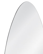 - The Reinhold Wall Mirror showcases a sleek teardrop shape framed in a thin silver border, highlighting its unique silhouette.