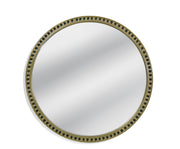 Sansee Wall Mirror is round featuring a circle motif design. The mirror frame features a brass clad finish. Includes two "D" ring attachment points for ease of access for hanging.