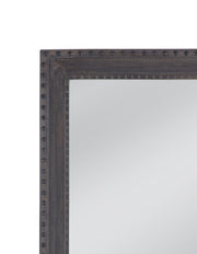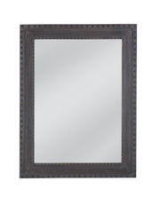 The Shiva Wall Mirror embodies timeless elegance with its classic rectangular frame adorned with a charming rivet design, finished in a sophisticated dark gray. Its traditional farmhouse aesthetic adds warmth and character to any living space.