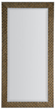 Tactile and textural, the Sundance Floor Mirror projects organic elegance with its rich brown layered cork-like frame accented with silver-colored metal. Measuring 84 inches high by 42 inches wide, the mirror offers beveled glass.