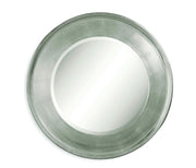 This silver leaf round wall mirror with 6 inch profile makes a stunning statement in any room. The design is simple yet elegant and includes a beveled mirror.
