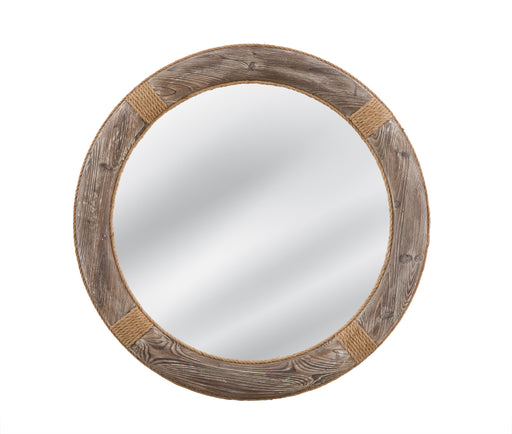 The Drift wall mirror is round featuring a radiating curved design and is weathered greige in color.Product FeaturesEquipped with D ring hangers fo...