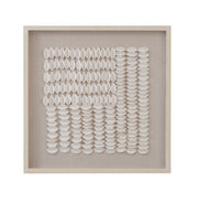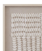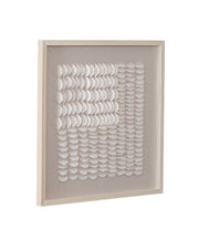 The Baguio Wall Art features a neutral organic style with folded rice paper pieces arranged in both vertical and horizontal patterns, creating a dynamic, geometric design. The soft linen background enhances the piece with a natural texture, while the off-white frame adds a subtle and refined touch. This artwork offers a sophisticated balance of simplicity and texture, making it a versatile addition to a variety of interior styles, bringing both elegance and visual interest to any space.
