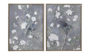 Birds and Bloom I is a print framed in a 1" pewter shadow box molding and features a special textured finish giving the effect of an original canvas artwork.