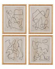 Bound IV features abstract ink scribbles on a cream background with white border and a simple natural wood frame.