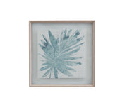 Burlap Ocean Palm III is a straight cut print floating in clear glass surrounded by a 7/8" weathered washed frame.