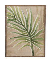 Burlap Palm Frond II is a print framed in a 1" rustic brown barnwood frame.