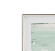 *All framed under glass art is built to order in our warehouse in Bassett, VA. Please allow 4-6 weeks for shipping once your order is received.* Coastal Patina is a set of two that features an abstract paper print with a single polar white matt and a 3/4" satin white interior molding with a silver scratch molding face. D-ring or sawtooth picture hanging hardware included. Material: Wood, Mat Board, Clear Glass. Made in the USA.