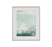 Coastal Patina II features an abstract paper print with a single polar white matt and a 3/4" satin white interior molding with a silver scratch molding face.