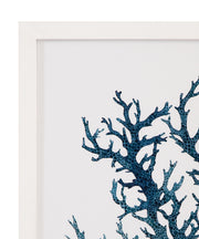 Coral Souvenirs IV is a print recessed and framed in a 1-3/16" matte white shadowbox frame.