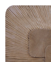 The Crobuzon Wall Art features a rustic modern carved wood panel with a starburst pattern background, where wood pieces mimic the natural form of organic leaves. The design blends earthy elements with a contemporary touch, creating a unique and striking focal point for any space. The rounded corner detail adds a soft, refined touch, enhancing the overall aesthetic. This piece brings a sense of warmth and nature into your home while maintaining a stylish, modern appeal.