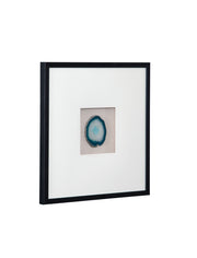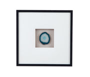The Crystal Geode Wall Art features a shadowbox style design with rich blue and deep aqua geode stone, creating a striking and elegant focal point. The thick cream color mat board adds contrast and highlights the natural beauty of the geode, while the rich black frame enhances its sophisticated appeal. This piece brings a sense of luxury and artistry to any space, offering a timeless design that complements a variety of interiors.