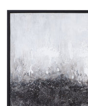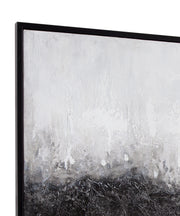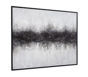 The Dividid Framed Canvas features a contemporary black and white abstract design in cool tones, creating a striking visual impact. The bold contrast of black and white adds depth and interest, making it an eye-catching piece that complements modern interiors. Framed in sleek black, this canvas art adds a touch of sophistication and edge, enhancing any space with its artistic flair.