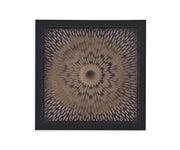 Floral Cut Out Wall Art is unique media of iron created into a bronze floral like cutout framed in a shadow box under glass in a medium and light wood tone frame.