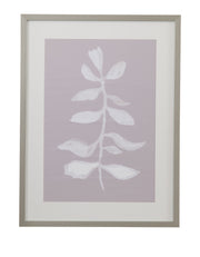 Fresh Leaves I is a print framed in a silver shadow box 1" molding with a pure white matboard with a silver edge on the interior of the matboard.