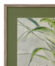 Green Palm is a two piece set of limited edition prints with metalic gold accents, signed and numbered by the artist and printed on fine art cotton rag paper. The print is framed in a 1" gray barnwood frame with a celery color matboard.