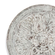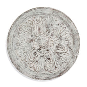 Rustic embossed architectural wood panel with "weathered" antiqued white painted finish giving the appearance of a "found" vintage item.