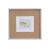 Neutral Shell Fresco I is a limited edition print, signed and numbered by the artist and printed on fine art cotton rag paper. The print is framed in a matte white frame with a textured tan mat board.