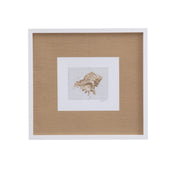 Neutral Shell Fresco III is a limited edition print, signed and numbered by the artist and printed on fine art cotton rag paper. The print is framed in a matte white frame with a textured tan mat board.