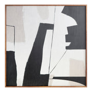 Nostalgia is a piece with a familiar appeal. Abstract shapes and graphic lines are made focal against soft, warm beiges. The solid pine frame is finished in a mid-tone brown echoing mid-century modern decor.