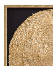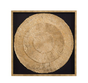 Ophelia Wall Art is a shadow box accentuated with a black mat and a gold fan with an accenting gold molding.