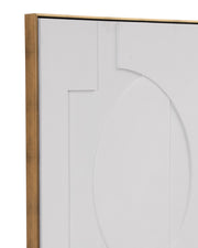 The Lonious is a wall hanging featuring a relief geometric design with gold molding.