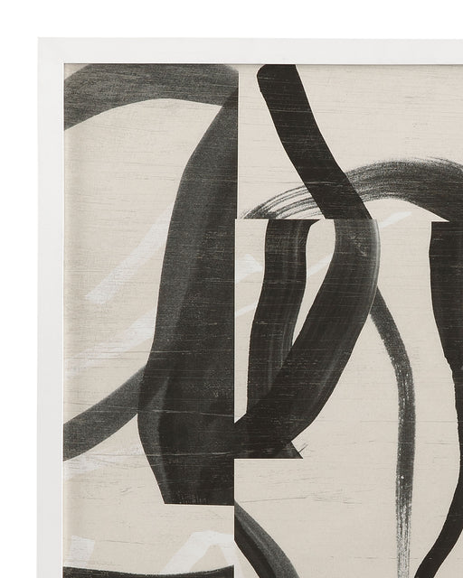 Ink Maze II is a print framed in a 1-3/16" matte white frame.Product Features Abstract design in gray, black, and tan Hanging hardware included No ...