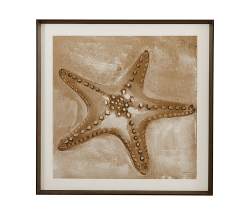Neutral Starfish is a print framed in a matte white 1-1/8" molding with a dark tan matboard.Product Features Dark brown frame Tan matboard Starfish...