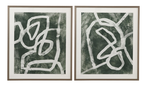Chalk Line is a set of two prints framed in a 1" pewter shadow box molding.Product Features Abstract green and white artwork with clean lines Hangi...