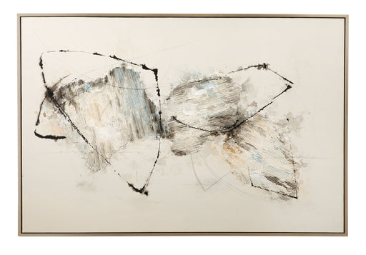 The Gascon framed canvas embodies contemporary elegance. Cool tone abstract brush strokes on an off white background wrapped in a sleek silver fram...