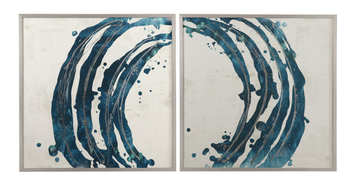 Embellished Blue Circle Framed Print (Set of 2) - Blue