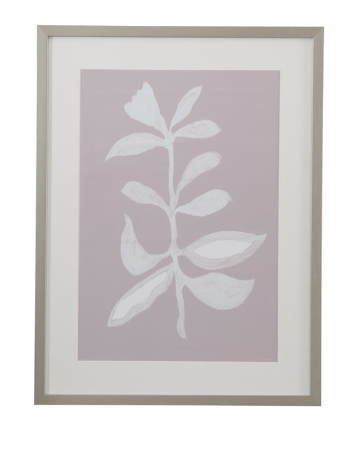 Fresh Leaves I is a print framed in a silver shadow box 1" molding with a pure white matboard with a silver edge on the interior of the matboard.Pr...