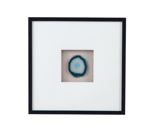 The Crystal Geode Wall Art features a shadowbox style design with rich blue and deep aqua geode stone, creating a striking and elegant focal point....