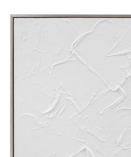 The Paradisio Framed Canvas is perfect for those minimalist spaces. Soothing white textures design wrapped in a clean brushed silver frame for a st...