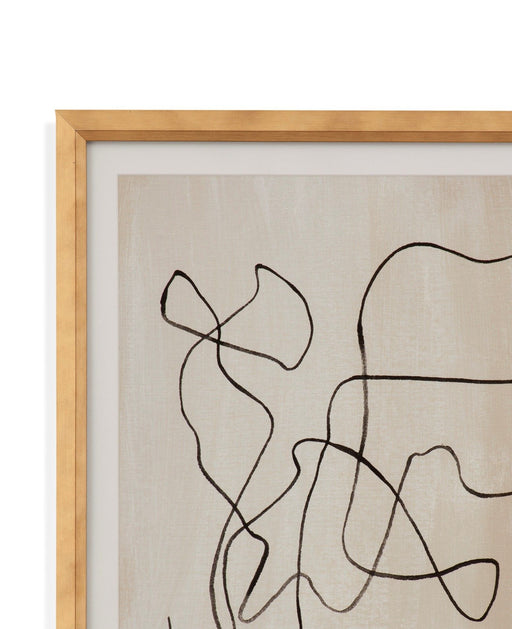 Bound I features abstract ink scribbles on a cream background with white border and a simple natural wood frame.Product Features Made in the USA, t...