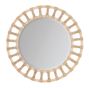 Inspired by tropical getaways and island locales, the Retreat Pole Rattan Accent Mirror features an inner and outer wood circle connected by rope accent ties. Transparent by design to showcase the unique grain patterns of the veneer.