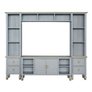 House Marchese - Entertainment Center - Gold Trim & Pearl Gray