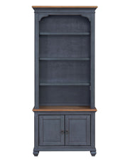 The Americana 84 inch Bookcase boasts a refreshing coastal twist on traditional style. Skillfully crafted from Rubberwood Solids and Birch Veneers, the subtle distressing, Corduroy Blue finish and Antique Pewter hardware give this Bookshelf Cabinet an updated look with a timeless heirloom feel. Featuring four shelves and two panel doors, this versatile Bookcase is ideal to showcase your book collection and home décor or store home office essentials. Just like Baseball, Apple Pie and Rock & Roll, the Americana Bookcase will become a beloved favorite in your home. Fully assembled upon arrival, this piece from Bridgevine Home is ready to unbox and enjoy.