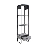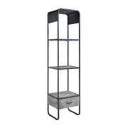Maximize storage and convenience with the Raziela side pier unit. This piece features a concrete gray finish, a black metal frame, open shelves, and a drawer for hidden storage. Users have the option to pair it with the matching tv stand to complete the set or utilize this pier as a bookshelf, as it can stand alone.