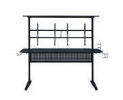 Enjoy a comfortable computer gaming experience with this versatile game table. Featuring streamlined metal structure with industrial style, the desk boasts LED light accent for added visual appeal. Functional designs such headset rack, controller racks, built-in USB ports and outlets ensure user have the best entertainment space. Desktop hutch features monitor rack and upper shelf that allow you to set any other peripherals you need.