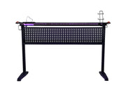 Overwhelm your opponent with this cozy yet cool gaming table. Sturdy metal frame with ergonomic design maximizes the comfort when you were using the computer. Red and black color scheme exudes a strong and powerful masculine energy, supporting your passion for a complete game play. All designed for entertainment, the game table boasts innovative features such as cup holder, controller racks, headset rack, built-in USB ports and outlets, with LED light enhancing visual enjoyment.