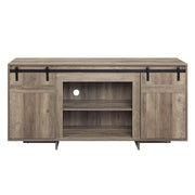 Add a cozy and inviting look to your living room with the Bellarosa farmhouse-style TV Stand. It is designed with a wooden frame and legs full of warm brown and rustic elements with its gray-washed finish. The two sliding barn doors with metal hardware add textures to this wooden piece. Two media compartments will help you organize audio-visual equipment. The four compartments behind the doors provide a lot of extra storage space.