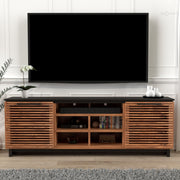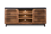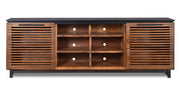 Our Graceland Console is cultured and chic, with a modern Hollywood appeal as classic as Elvis himself. This two toned stunner with slatted doors would have been a hit down in the jungle room. It holds up TV and has plenty of storage for media gear to entertain the night away with your favorite Elvis movie.